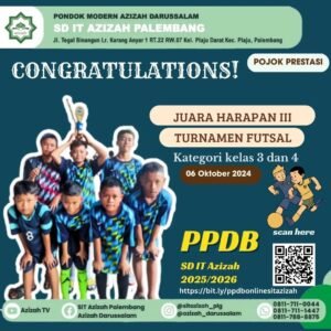 Palembang — Prestasi membanggakan kembali diraih oleh Tim Futsal SD IT Azizah. Tim futsal berhasil