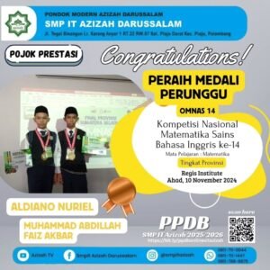 Palembang — Siswa SMP IT Azizah Darussalam kembali menorehkan prestasi membanggakan dengan meraih Medali Perunggu